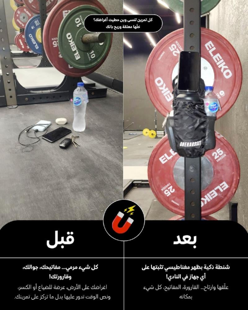 ابتكار يحفظ مويتك و أغراضك في مكان واحد و بظهر مغناطيسي يخليها سهلة الحمل داخل النادي